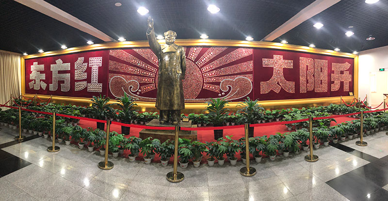 陳列館展廳內由成百上千枚像章組成的“東方紅,太陽升、“學習雷鋒好榜樣”字樣,還有由2萬枚像章組成的“東方紅太陽升”巨幅標語,“好好學習,天天向上”等主席語錄和長城、國旗、五星造型等也顯得蔚然壯觀。